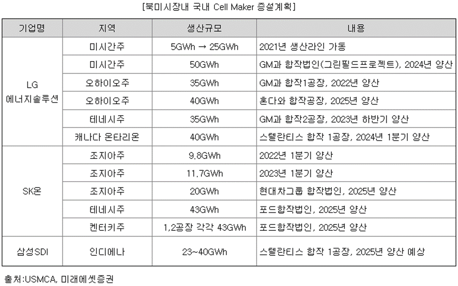 - LG에너지솔루션 등 Cell Maker들의 미국, 유럽 등 지역 진출에 따른 동반 혹은 협업 형태로 진출. 또한, 미국 IRA법에 의해 배터리 부품의 일정 비율을 미국 내에서 생산 및 조립을 해야하므로 북미에 배터리 공장 건설 예정.